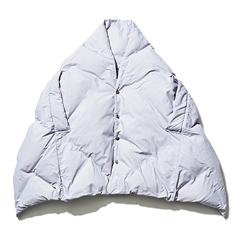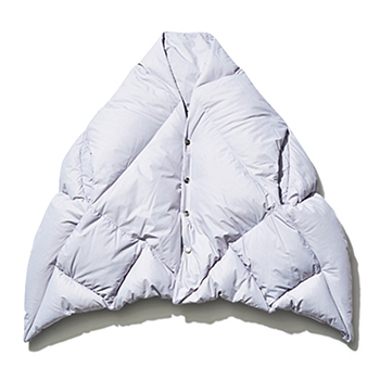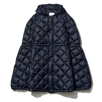 アームホールがジップ仕様の、腕まで包み込めるAライン。ウエストのドローコードをしぼると、たちまち立体的なペプラムへ。レジャーなど、動くけれどオシャレもしたいときに重宝しそう。(スタイリスト・船戸さん) 薄くともしっかり体を温められる、ホワイトダックダウンを採用。持ち歩きもしやすい巾着つき。 19,800円/タイオン