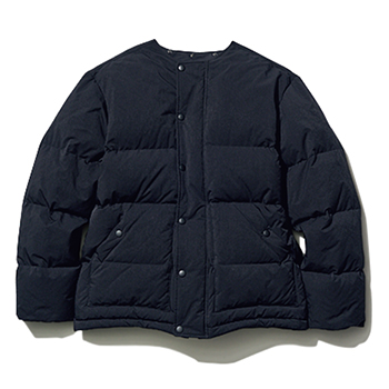 軽くあたたかい750フィルパワー以上のプレミアムダウンを詰め込んだ1着。「パウダーソフト」と名付けられた、さらさら&もっちり質感の表生地は小雨程度なら難なく弾く撥水加工つき。