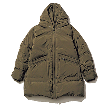 「首からお尻まですっぽりと包み込める丸みとふくらみ。さらにこの無骨に見えないやさしいグリーンが新鮮。ダウンでも重く見えず、リアルに購入。」(スタイリスト・船戸さん)