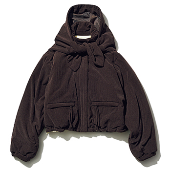 クロップト丈で着られる軽量パファージャケット。大きなフードを取りはずし、短丈のスタンドカラージャケットとしても使える2WAY仕様。