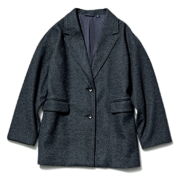 ジャケットコート 6,990円/GU 肩ひじ張らない、落ち感のあるショルダーライン。ポケットの直線的なフラップがキレを加算され、位置がやや高いぶん腰も上がって見える。