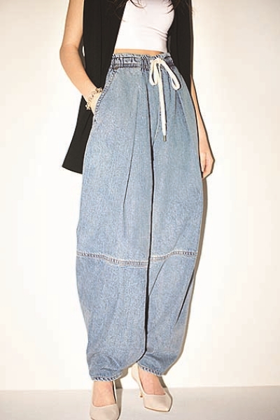 締まったウエストがきわ立つことでかなうスマートなぶかっと感