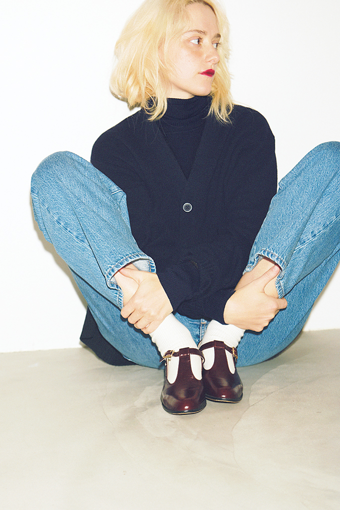 ぶかっとしたスウェットで着くずして、トラッドな装いをまじめ手前に。美脚なストレートデニムを合わせて、完成度をアップ。デニムはヴィンテージのようなフェード感に加えて、しゃがんでも窮屈感のないやわらかな風合い。