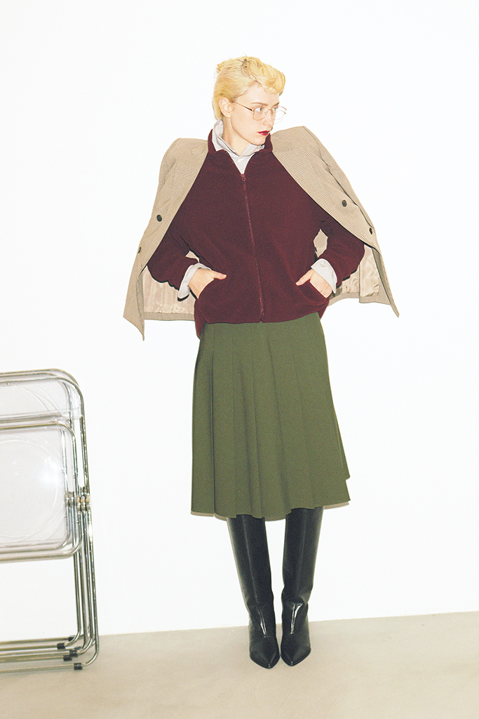 「昨シーズンはジャケットやコートのインナーにフーディを使うのがトレンドでしたが、今季は断然フリース。ユニクロのフリースはあったかいのに厚すぎないから、インナーづかいもしやすい。ふだんあまりフリースを着ない人は、ハイネックタイプが使いやすそう。きちんとした服とテイストMIXしてもなじみやすいです。」(樋口さん)