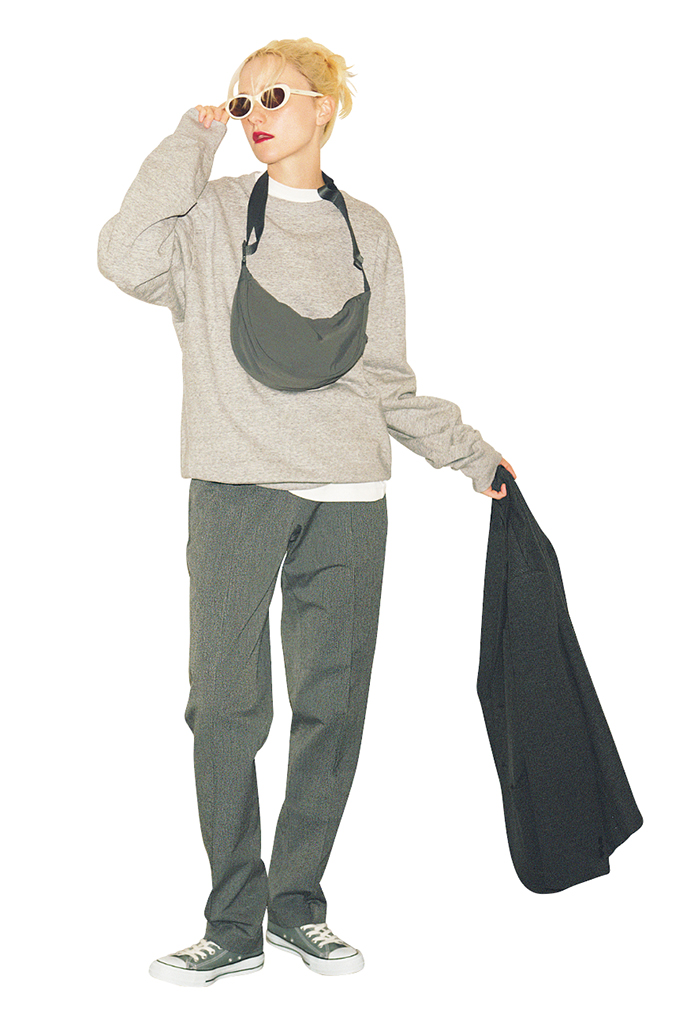とくにユニクロのグレースウェットは、いい意味でクセがなく、素材もやわらかいため着方や合わせ方に応用がきくのですごく使える。カジュアル派としては、すそのしぼりやそでの余りで動きが出る”メンズ”のほうが好み。」(樋口さん)