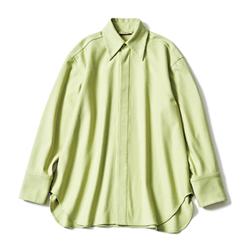 ライトグリーンウールシャツ 31,900円/ヤヌーク(カイタックインターナショナル) 軽い羽織りとしても使える、くたっとしたウール地。若草のような澄んだ色。