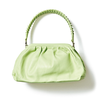 ミントグリーンバッグ 41,800円/リンク 白や黒の服に浮かない、色素薄めのグリーン。ふだんあまり色を着ない人は、まずは小物で挑戦。硬派なレザーバッグでいっそう手堅く。