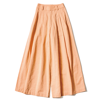 ピンクタックワイドパンツ 44,000円/aLORS オレンジ寄りの甘くないピンク。下広がりのワイドパンツで、リラクシーな雰囲気へ調整。ハイウエストだから脚が長く見える。