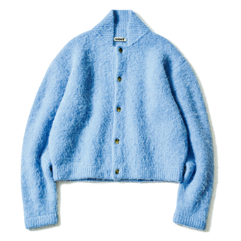 ブルーモヘアニットブルゾン 36,300円/NKNIT 防寒しつつ、見た目は春へと移行できる。クリアなブルーのモヘアニットは、季節をまたぐブリッジアイテムとして便利。