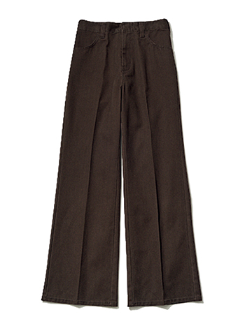 ブラウンフレアチノパンツ(別注) 14,300円/ディッキーズ(SLOBE IENA 自由が丘店) 濃いブラウンならワーク感がひかえめでラフな風合いながら上品な佇まい。ひかえめな広がりの絶妙シルエットとハリでスラックスのようなキレイさを実現。