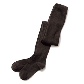 茶ロングソックス 2,200円/靴下屋(タビオ) 今季豊富なミモレ丈スカートに適した、股下までとどくスーパーロング丈。脚線をすらりと流す細いリブ。