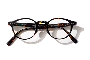 眼鏡 41,800円/プロポ(プロポデザイン) 顔になじみやすいブラウンなら、服のテイストを問わず合わせやすい。知性を高めるスリムなフレーム。