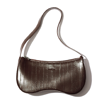 茶バッグ 19,800円/HVISK(S&T) 変型デザインなのに主張しすぎないのは小ぶりなサイズだから。ブラウンの中でもコクのある色みで大人っぽく。