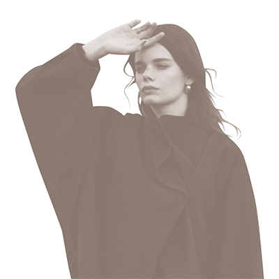 首元周辺だけとめてAラインに仕立てると、地味な配色でも、どことなくドラマチックな佇まいに。