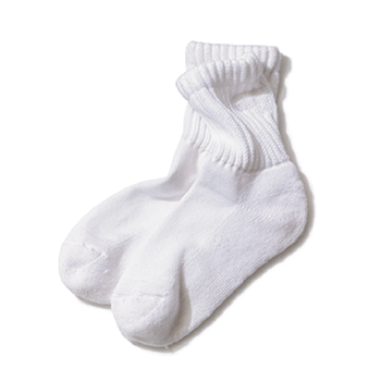 白ソックス 6,600円/SEA(エスストア) 足首部分は伸縮性の高い太リブで、くしゅっとニュアンスをつけられる。足を包み込むふっくらとした生地感。