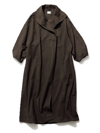 茶スタンドカラーコート 132,000円/BIYŌMA(ツカモトコーポレーション) そでにも身ごろにもボリュームがある、ラフに着られるスエードコート。