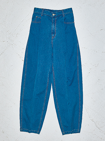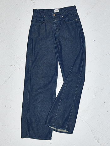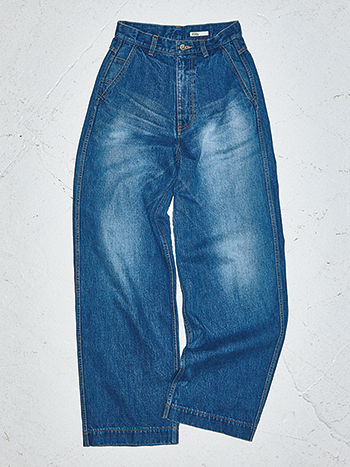 すそに向かって幅が広がるサイドの切り替えにより、太すぎず細すぎない絶妙なシルエットが完成。肌になじむソフトな風合いで、デニムながらたおやか。女性らしいトップスと波長の合う、しなやかな縦落ちが魅力。