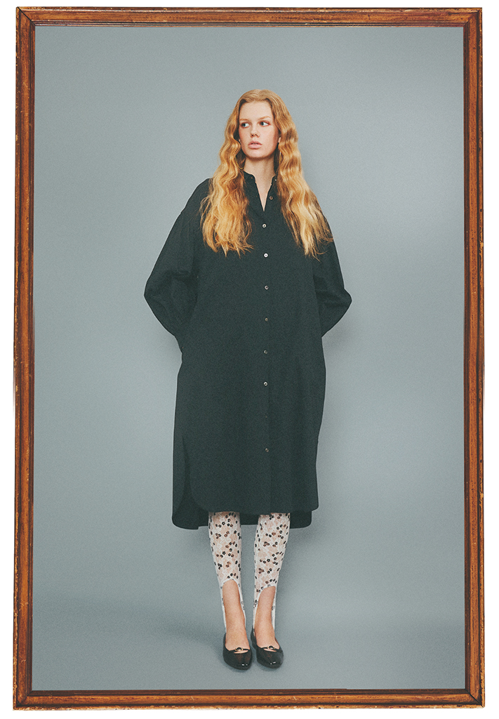 ボリューミィなワンピースの抜けづくりに、透け感のある小花柄トレンカを新調。少量の飾り気とストッキングのような品がそなわり、気楽な足元でも華やかな印象に。少しの黒があるおかげで、白1色よりもコントラストがつきすぎず似合う服も多い。