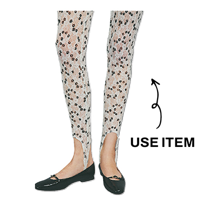 肌がほんのりと透けるレース素材で、どことなくセンシュアルな雰囲気。ワンピースに合うのはもちろん、引き続き豊富なミモレ丈のIラインスカートと旬のレイヤードルックを楽しむのもオススメ。かかとへの引っかけ部分を通常よりも長くすることで、ぺたんこ靴以外でも足首がのぞき華奢見えに貢献。