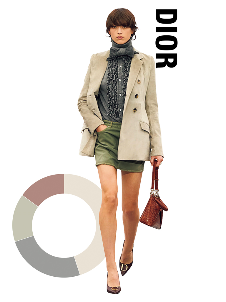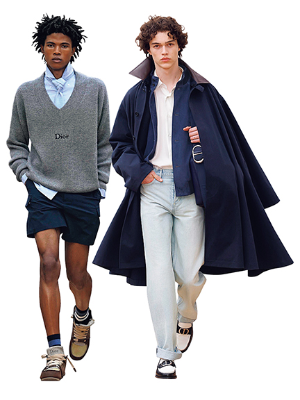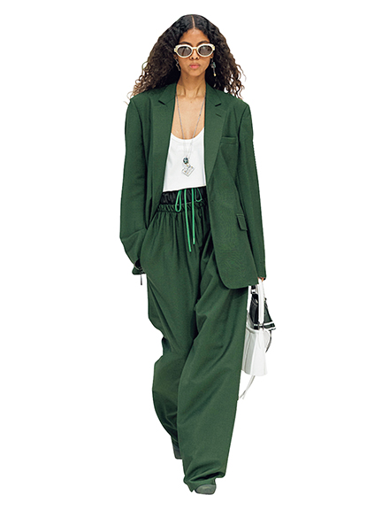 ユニクロでも手腕を振るう中、ロエベから移籍したジョナサン・アンダーソン氏による初コレクション。全体を通してメンズとのリンクが仕掛けられ、マニッシュなジャケットを淡い配色で柔和に転換。