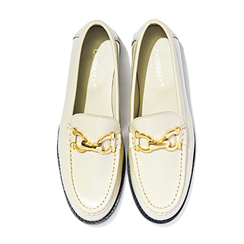 オフ白ローファー (2) 32,450円/CAMINANDO(DEUXIEME CLASSE 青山店) 大ぶりなビットがアクセントに。細身かつハリのあるレザー素材で気品のある足元を演出。