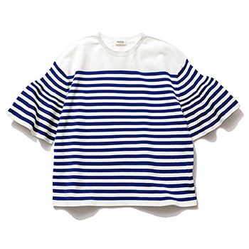 ボーダーニット 18,700円/マカフィー(トゥモローランド) フリルをかたどったスリーブが構築的に広がり、カジュアルなボーダーをフェミニンに転換。