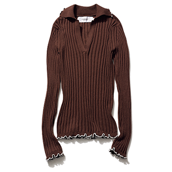 ブラウンニット 37,400円/JANE SMITH(ジョン メイソン スミス ジェーン スミスストア) えりやそで、すそのメローディテールがほどよい甘さを加算。