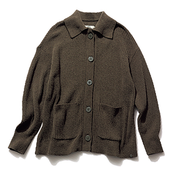 手間ひまかけて丁寧に編み立てられるニットの工程。そのきめ細かな編み地によって、まじめな印象を生む正統派なデザインに、さらなる風格を呼び込める。