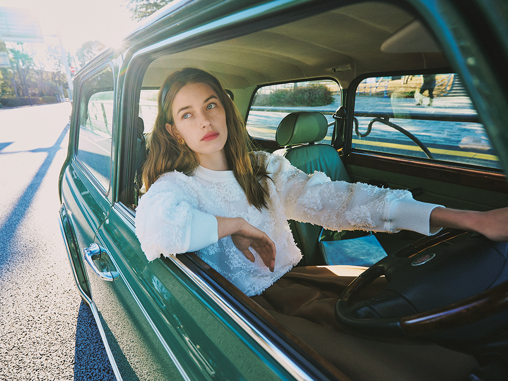 春にあえて着る起毛感はそれだけで目を引く存在だから。コートなしで過ごせる今、贅沢なボリュームや特有の風合いを味方につけて、ニットで得られる高揚感を素直に味わって。