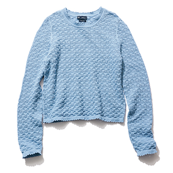 ブルーレースニット 7,990円/Gap なつかしい雰囲気をまとったかぎ編みレースは、装いの奥行きづくりにも有効。適度な厚みでロンT感覚で着られる。
