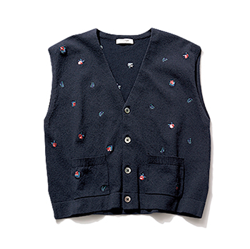 ニットベスト 28,600円/マカフィー(トゥモローランド) 大人っぽく落ち着く、小ぶりな花柄の刺しゅう。コンパクトな短丈で、ボトムを問わず脚長見え。