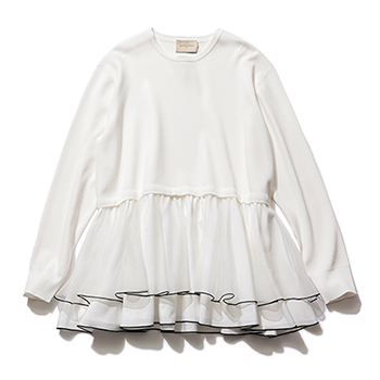 ティアードニット 24,970円/ユナイテッドアローズ(ユナイテッドアローズ 渋谷スクランブルスクエア店) 2段のボリュームシフォンが所作に余韻を残す。