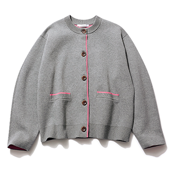 ニットカーディガン 11,000円/ジャーナル スタンダード レリューム(ジャーナル スタンダード レリューム ルミネ新宿店) ピンクのパイピングがポイント。