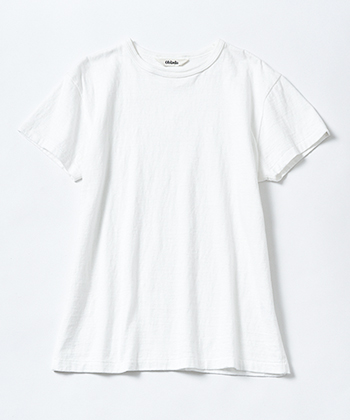 白Tシャツ 7,700円/Oblada(シンチ) 細くもゆるくもなく、さらに透け感もない究極ベーシック。落ち綿と呼ばれるリサイクルコットンを使い、ヴィンテージのような風合いを表現。