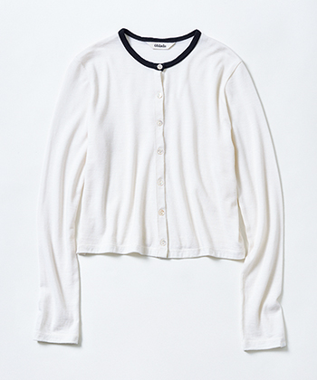 白カーディガン 19,580円/Oblada(シンチ) ウール100%の上質なしなやかさで、薄手ながら大人っぽく。1枚で着たときもすっきりと見え、短丈でボトムとのバランスもとりやすい。