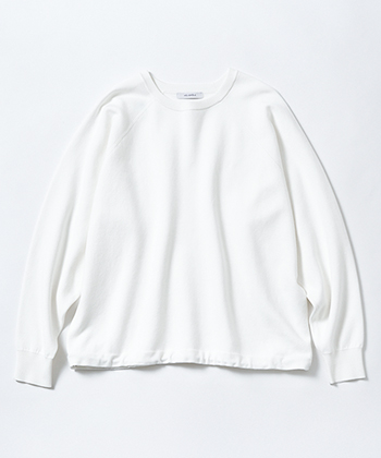 白スエット 17,600円/エリオポール(エリオポール代官山) 裏起毛なし&ラグランスリーブでワイドながら膨張しらず。合わせるボトムによってすその形を変えられるのがうれしい。