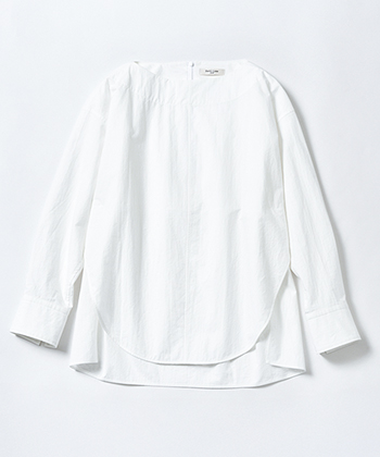 白ボートネックシャツ 25,300円/デミルクス ビームス(デミルクス ビームス 新宿) 前はすっきり、後ろはお尻を隠せるすそデザイン。横広のネックがエレガントな雰囲気をあと押し。