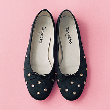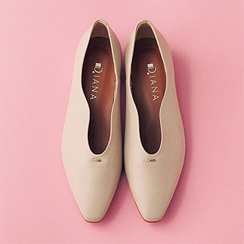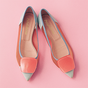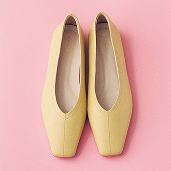 遊びのきいたレトロな色やデザインは、主張が強すぎないフラットなら装いの適度なアクセントに。大人っぽさを保てる、甲の部分がほっそりとしたスリムなフォルムがねらい目。
