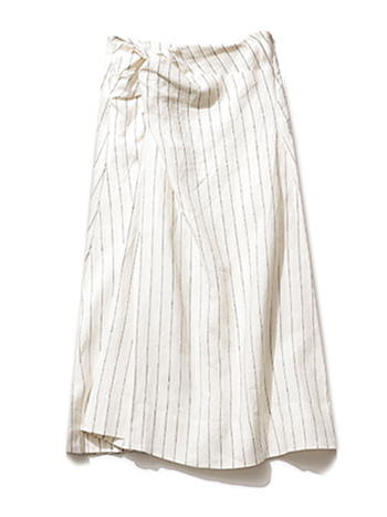 75,900円/マーレット(LITTLE LEAGUE INC.) ウエストのラップ風デザインは、気になるお腹まわりを自然に隠してくれる優れもの。トップスをインしてもお腹が目立たず、リラクシーな素材感のおかげで、コンサバになりすぎない『ちょうどいい女らしさ』が手にる。裏地つきで透けにくい。