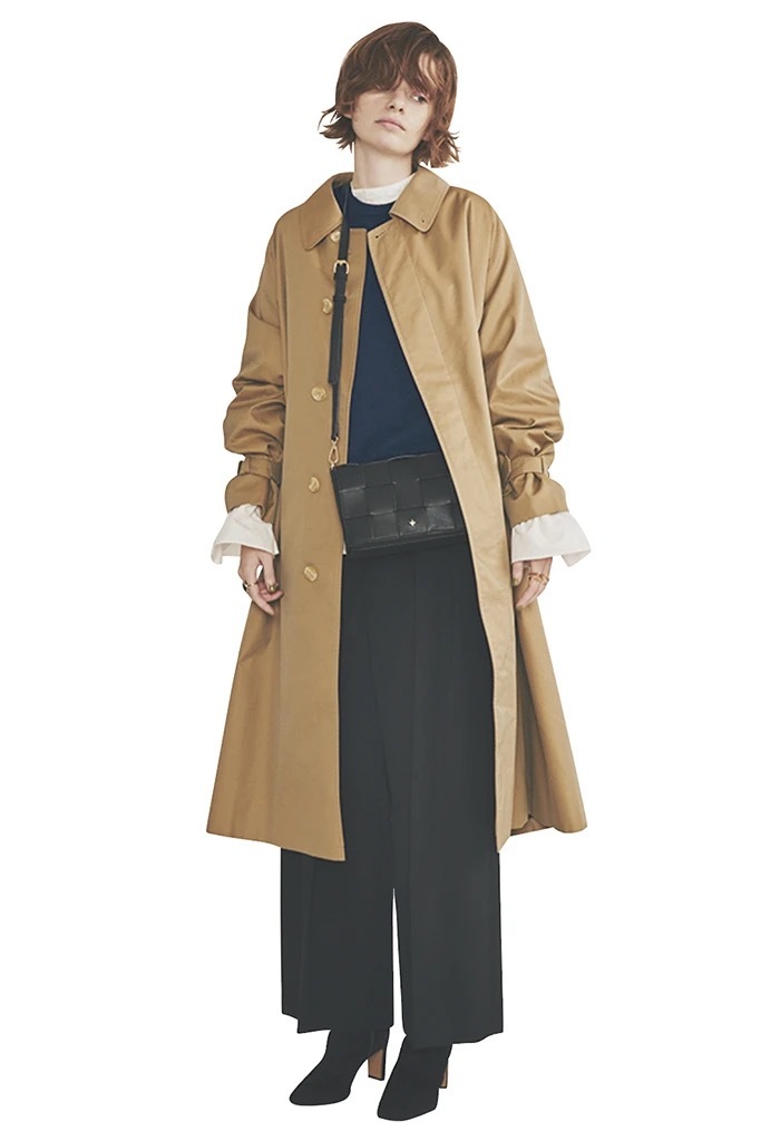 ●コート(メンズ) 42,900円/ジムフレックス(ビショップ) ブラウス 18,700円/ザ ポーズ(ウィム ガゼット ルミネ新宿店) ニット 48,000円/BATONER パンツ 42,900円/ATON(ATON AOYAMA) バッグ 12,100円/PETA + JAIN(ジャック・オブ・オール・トレーズ プレスルーム) ブーツ 26,400円/ダイアナ(ダイアナ 銀座本店)