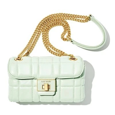 GISELe(ジゼル) (横スワイプで次の写真へ) 14 / 22 ☑奥行きを生むもっちりとした中綿キルト ミントグリーンレザーキルティングバッグ( H10.5 × W19 × D5.5 ) 56,100円/kate spade new york(ケイト・スペード カスタマーサービス) 見た目以上にものが入るボックス型。チェーンストラップを片側に寄せればななめがけも可能。 この記事の詳細を見る