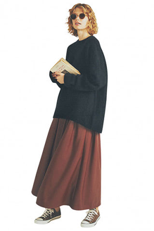 【明日なに着る?】短丈ニットが多くなるから「スカートはサテンのフレア」がよさそう