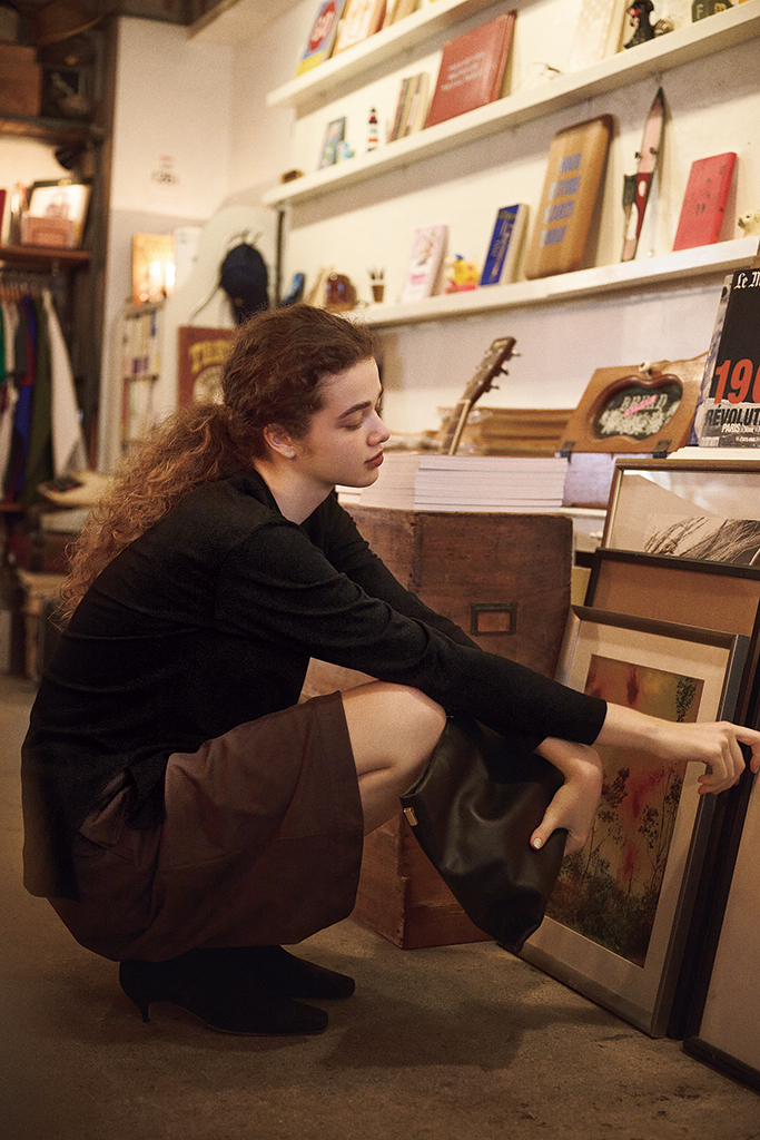 着込むにはやや気が早いから、配色だけ「深く・渋く」シフトチェンジ。季節の流れに沿った穏やかな重厚感が生まれるだけでなく、素肌との適度なコントラストが引き立ち、女性らしさも向上。