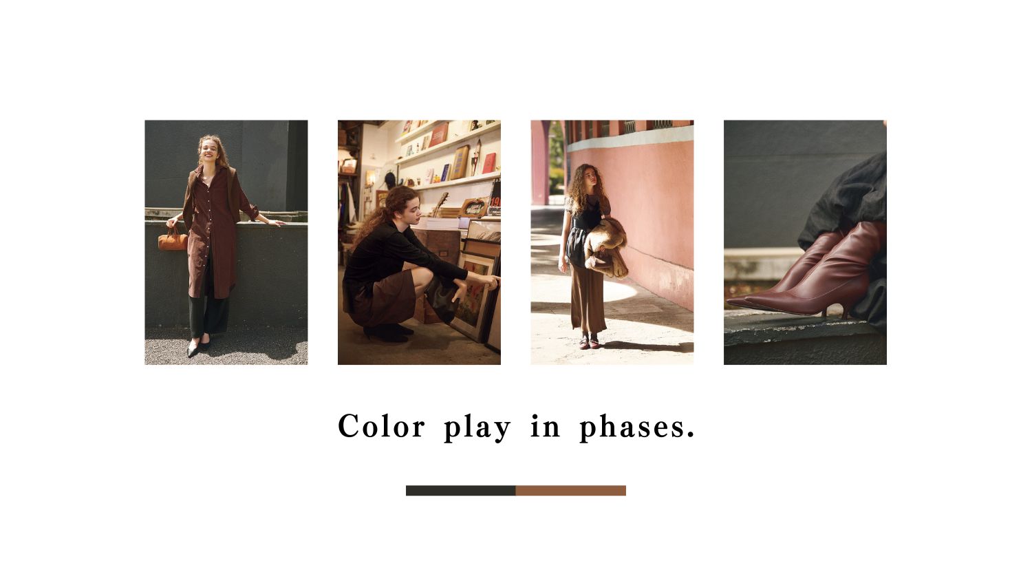 着込むにはやや気が早いから、配色だけ「深く・渋く」シフトチェンジ。季節の流れに沿った穏やかな重厚感が生まれるだけでなく、素肌との適度なコントラストが引き立ち、女性らしさも向上。