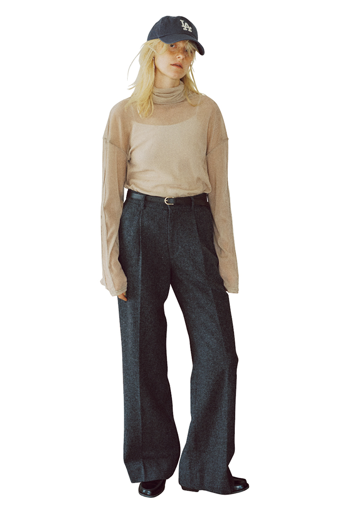 ウールパンツに隙を生む、軽やかなシアーでほのかに女っぽく