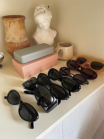 「サングラスやアクセサリーなど、日差しに敏感なアイテムは、直射日光を避けて保管。アイテムどうしがぶつかって傷つかないように、間隔をあけて収納することもポイント。」(菅原さん)