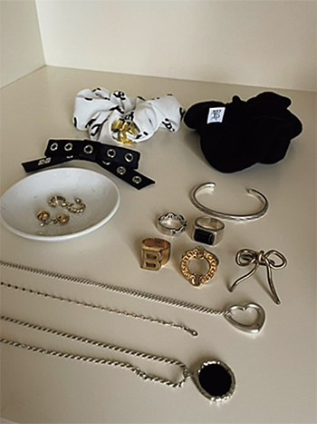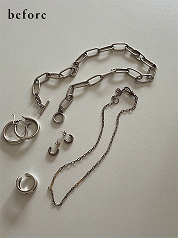 「ふだんシルバーのジュエリーをつけることが多いので、クリーナーは必須アイテム。10秒ひたすだけでピカピカになるTOP WELLのクリーナーは、すでに何度もリピート。」(金田さん)