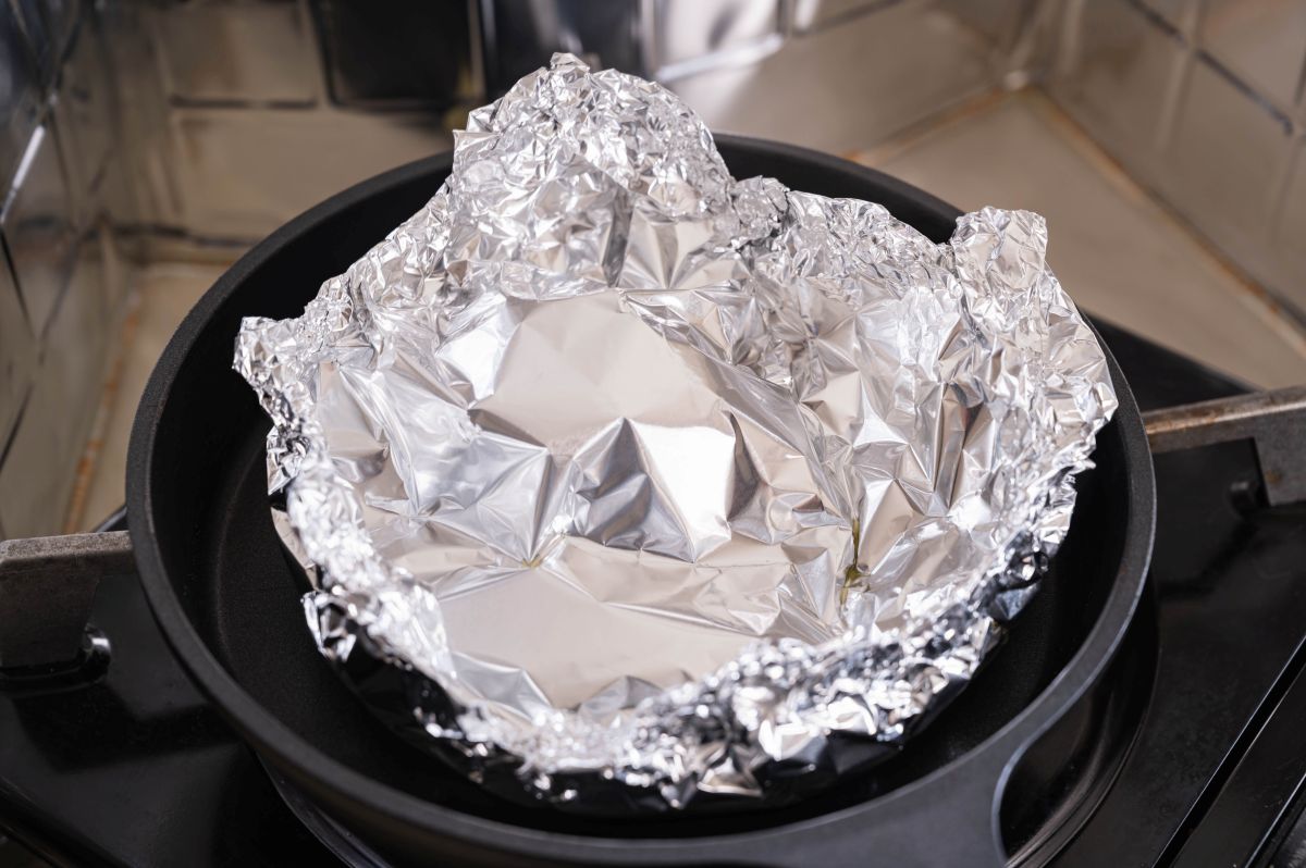 熱湯へアルホイルと一緒に投入