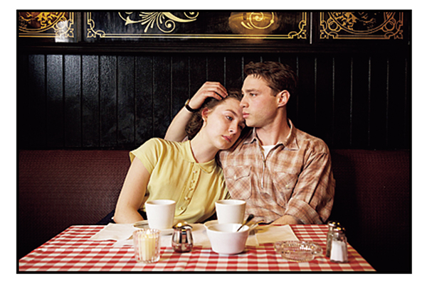 1950年代のアイルランドとアメリカを舞台に、ひとりの女性の葛藤と成長を描く物語。主人公エイリシュとトニーの食事シーンでは、ギンガムチェックのテーブルクロスがレトロなムードを助長。白で統一された食器が派手な柄を引き立てる抜け感につながる。