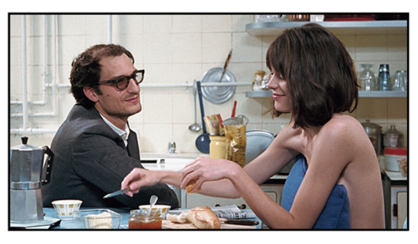 1960年代フランスの文化運動のパイオニアであるゴダールと、その妻アンヌの姿を描く伝記的作品。ゴダールとアンヌが朝食をとるキッチンには、白のタイル壁にシルバーのレードルや鍋ぶたがひっかけられ、ペールトーンの空間にささやかなキレとして作用。